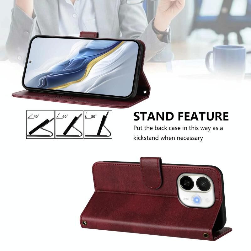 Θήκη τηλεφώνου από δέρμα retro με σχέδιο patchwork για Tecno Spark 30C 5G / Pop 9 5G (Μαύρο)