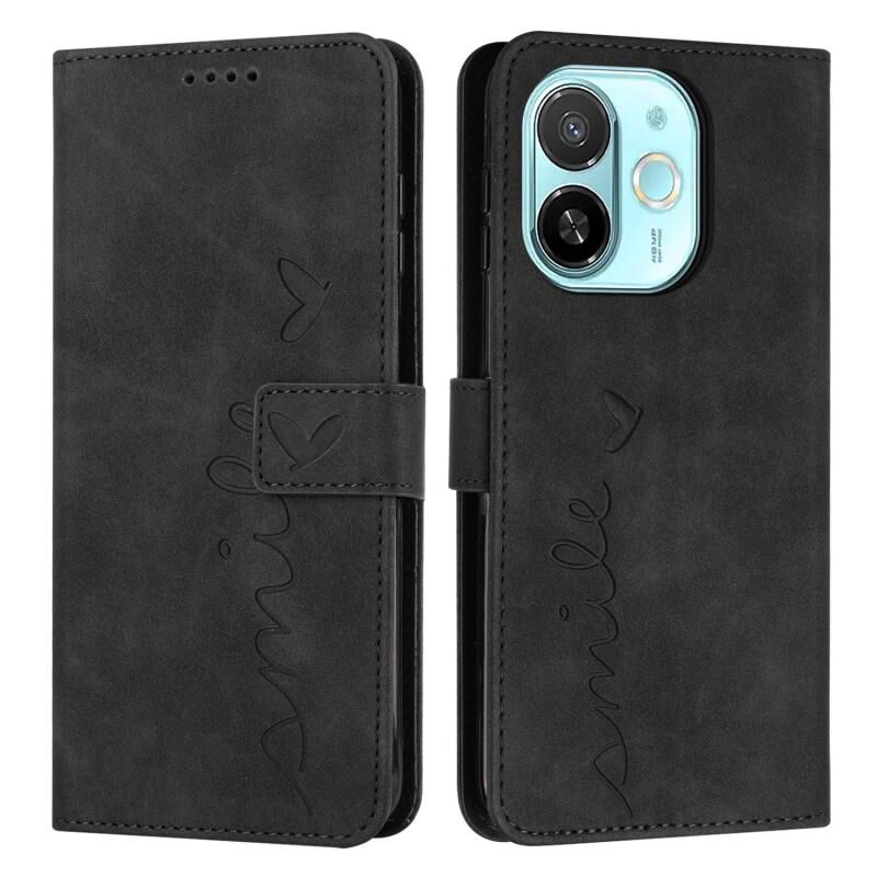 For Tecno Spark 30C 5G / Pop 9 5G Skin Feel Heart Embossed Leather Phone Case with Long Lanyard(Black)