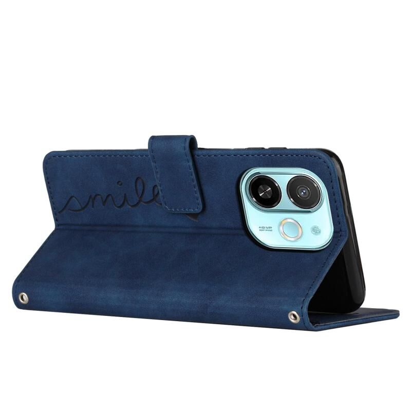 For Tecno Spark 30C 5G / Pop 9 5G Skin Feel Heart Embossed Leather Phone Case with Long Lanyard(Blue)