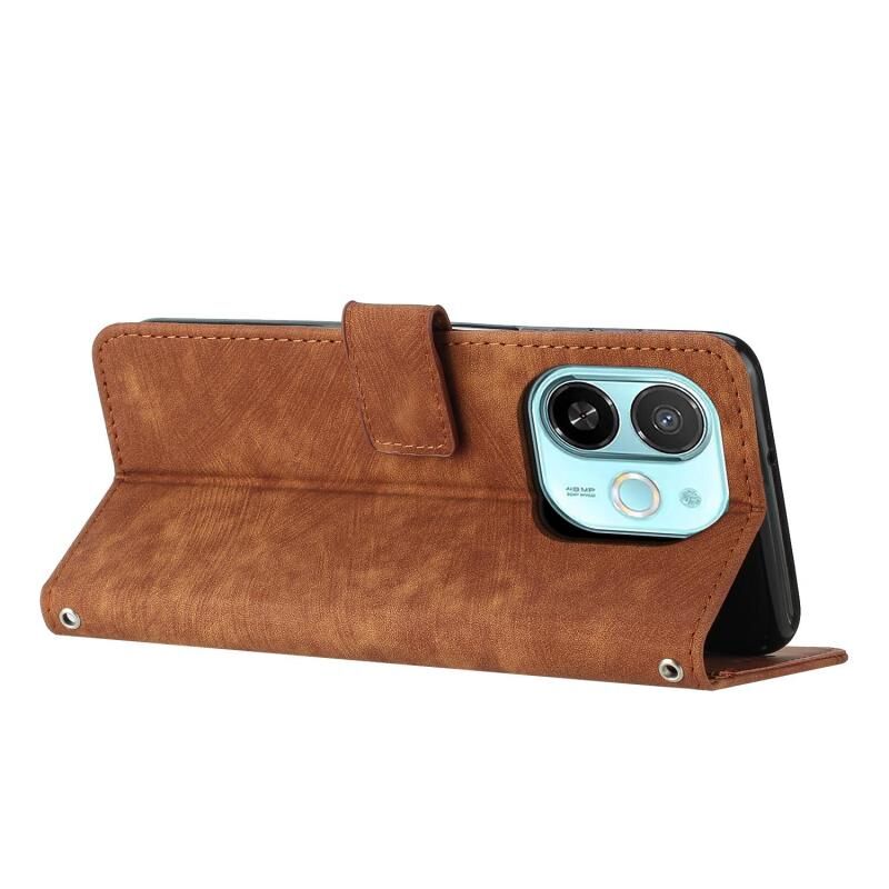 For Tecno Spark 30C 5G / Pop 9 5G Skin Feel Stripe Pattern Leather Phone Case with Long Lanyard(Brown)