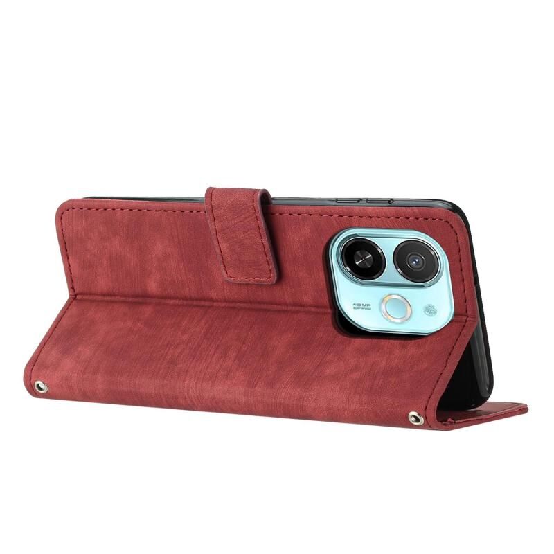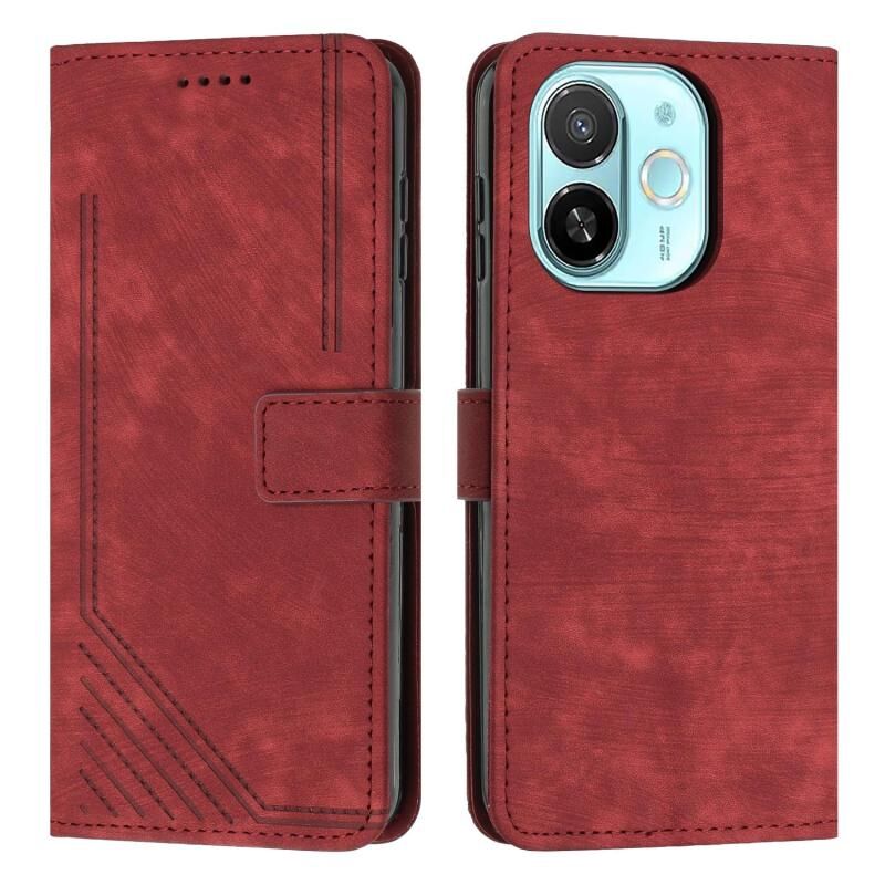 For Tecno Spark 30C 5G / Pop 9 5G Skin Feel Stripe Pattern Leather Phone Case with Long Lanyard(Red)