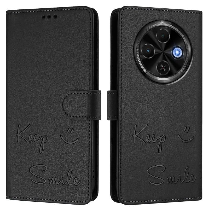 Θήκη τηλεφώνου από δέρμα με ανάγλυφο χαμόγελο RFID για Tecno Spark 30C 5G / Pop 9 5G (Μαύρο)
