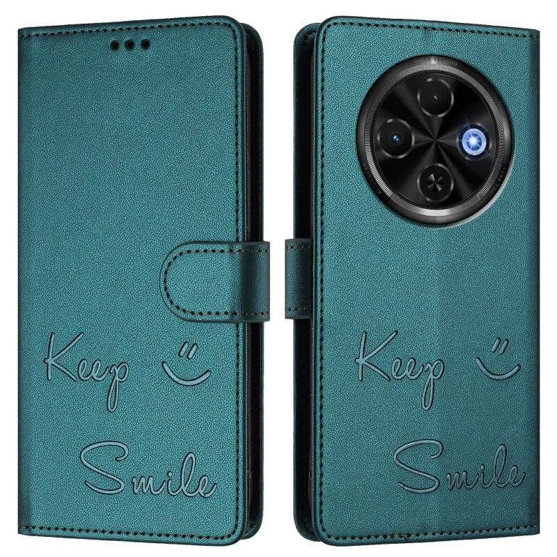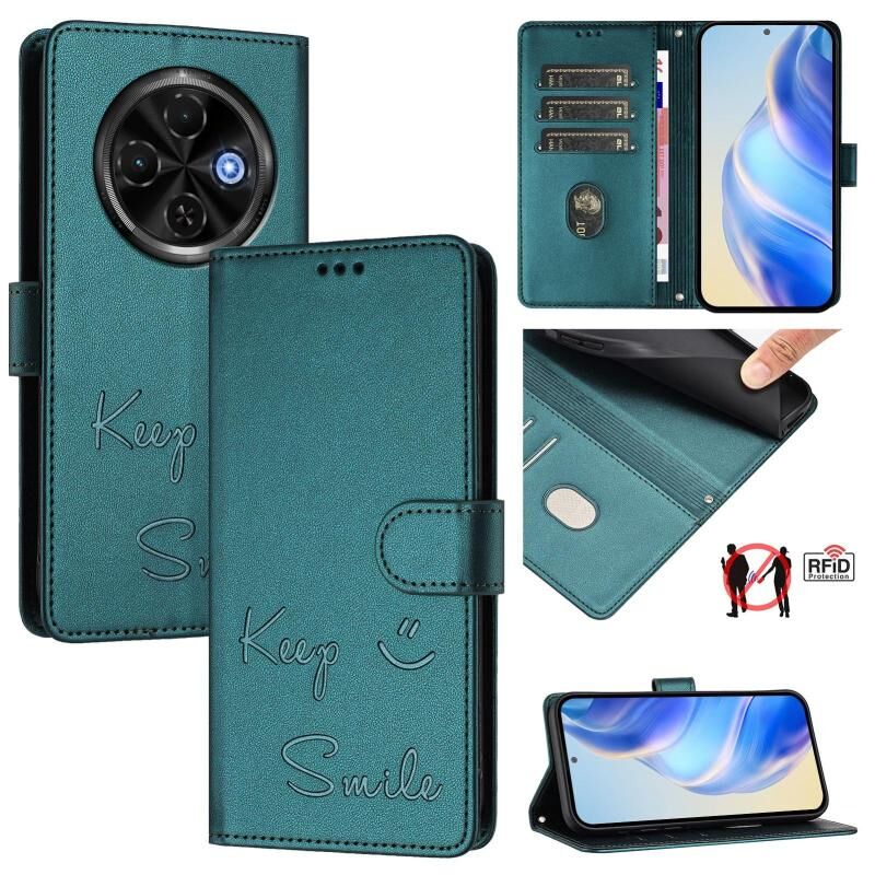Θήκη τηλεφώνου από δέρμα με ανάγλυφο χαμόγελο RFID για Tecno Spark 30C 5G / Pop 9 5G (Πράσινο παγωνιού)