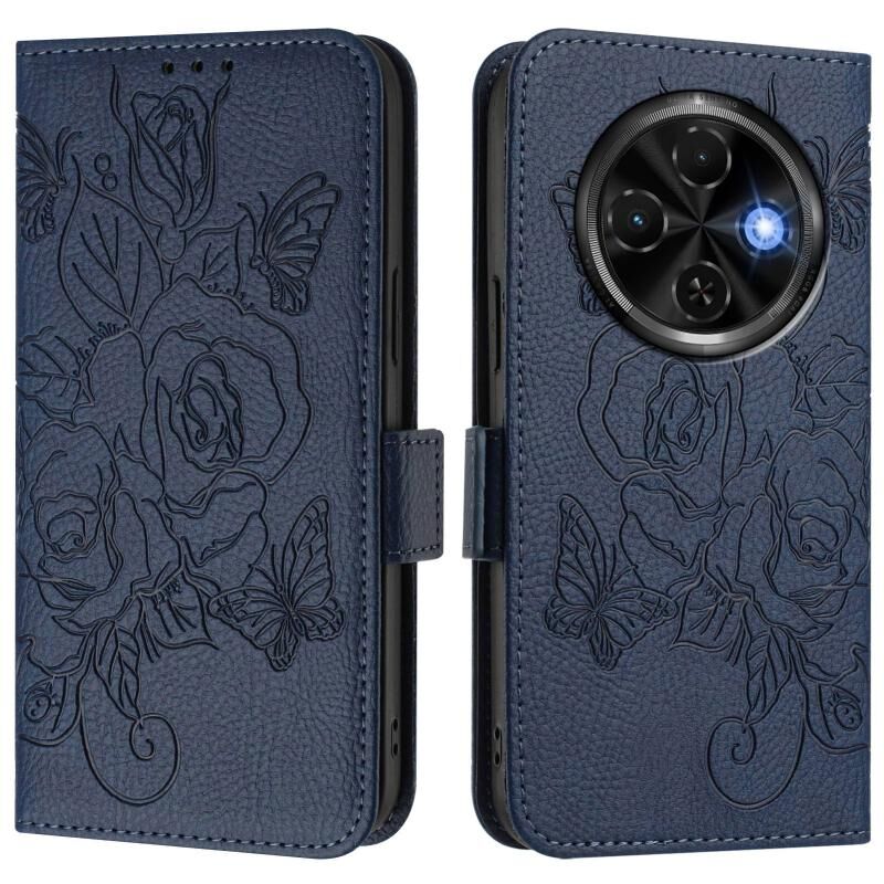 For Tecno Spark 30C Embossed Rose RFID Anti-theft Leather Phone Case(Dark Blue)