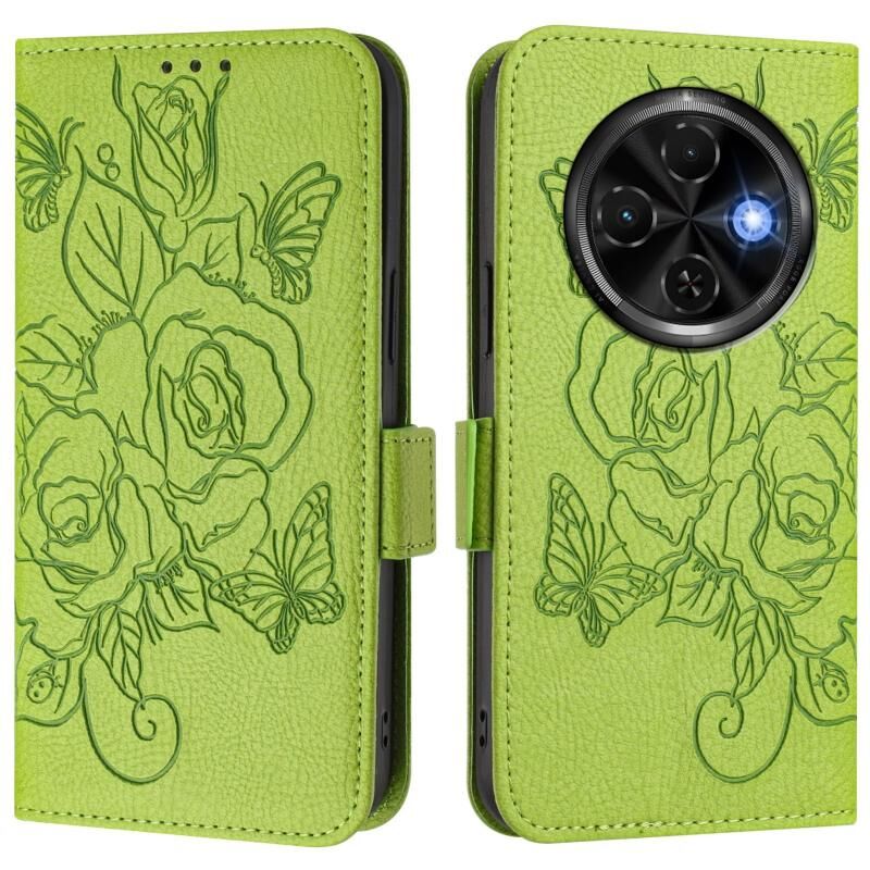 For Tecno Spark 30C Embossed Rose RFID Anti-theft Leather Phone Case(Green)