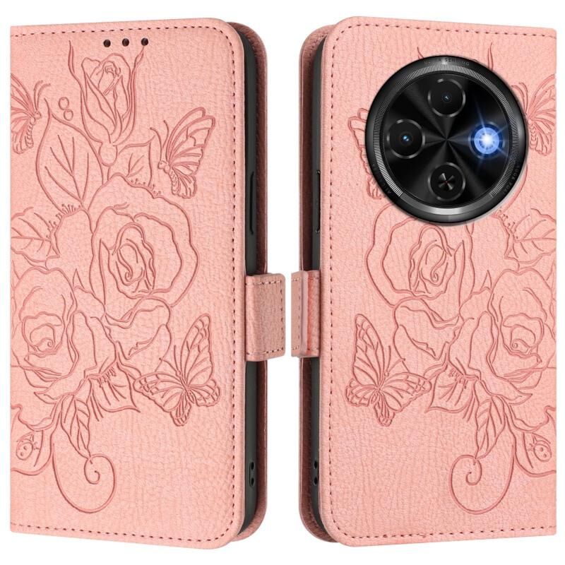 For Tecno Spark 30C Embossed Rose RFID Anti-theft Leather Phone Case(Pink)