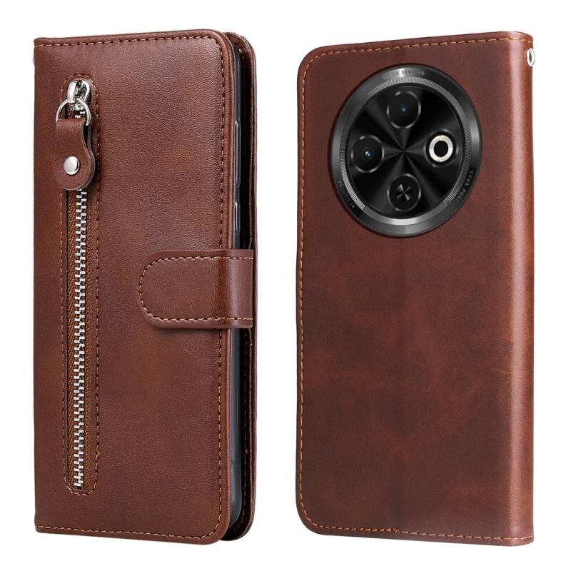 Για Tecno Spark 30C Μόδα μοσχάρι υφή φερμουάρ δερμάτινη θήκη τηλεφώνου (καφέ)