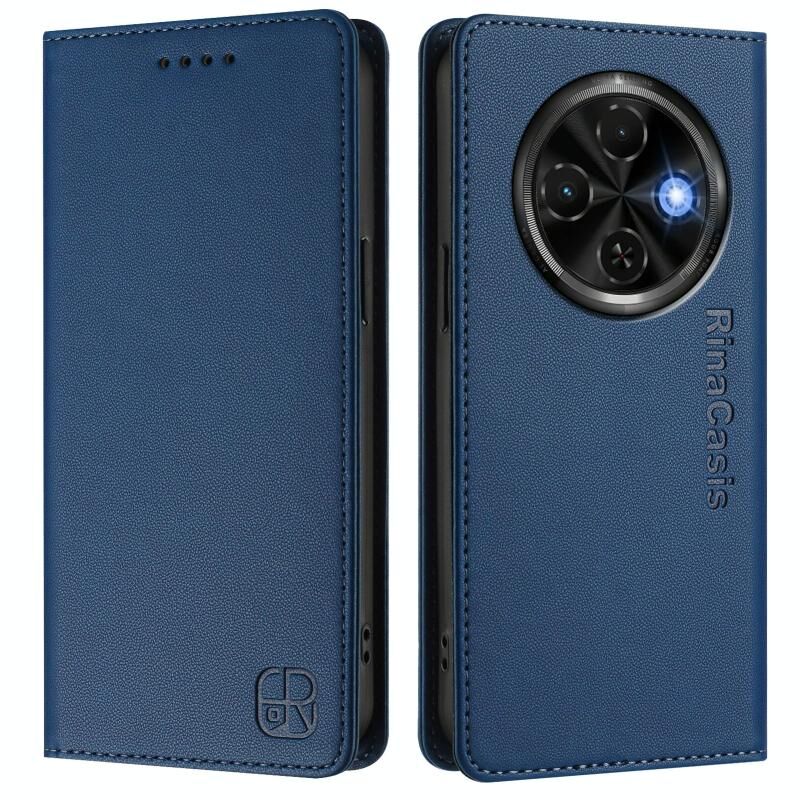 For Tecno Spark 30C RC01 Dual-Folded Magnetic Suction RFID Leather Phone Case(Dark Blue)