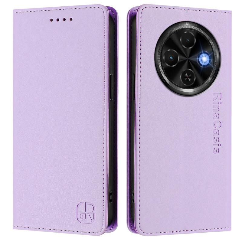 For Tecno Spark 30C RC01 Dual-Folded Magnetic Suction RFID Leather Phone Case(Light Purple)