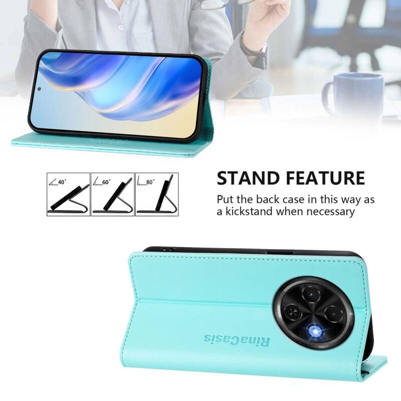For Tecno Spark 30C RC01 Dual-Folded Magnetic Suction RFID Leather Phone Case(Mint Green)