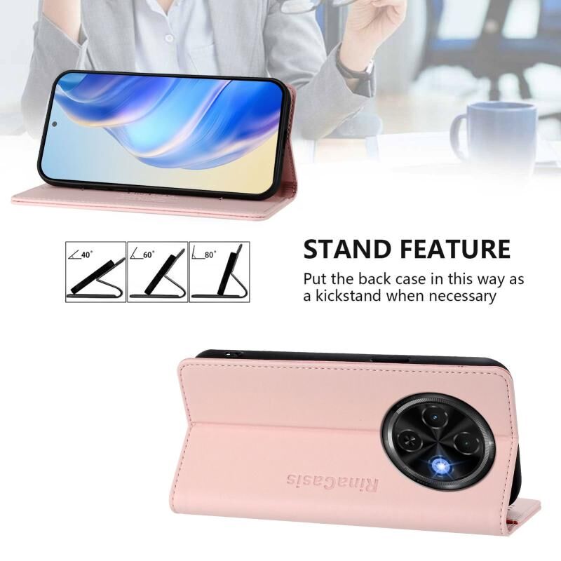 For Tecno Spark 30C RC01 Dual-Folded Magnetic Suction RFID Leather Phone Case(Pink)