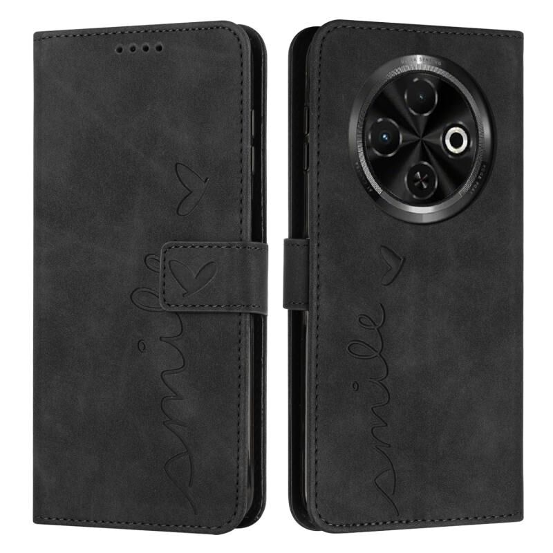Για Tecno Spark 30C Skin Feel Heart ανάγλυφη δερμάτινη θήκη τηλεφώνου (μαύρο)