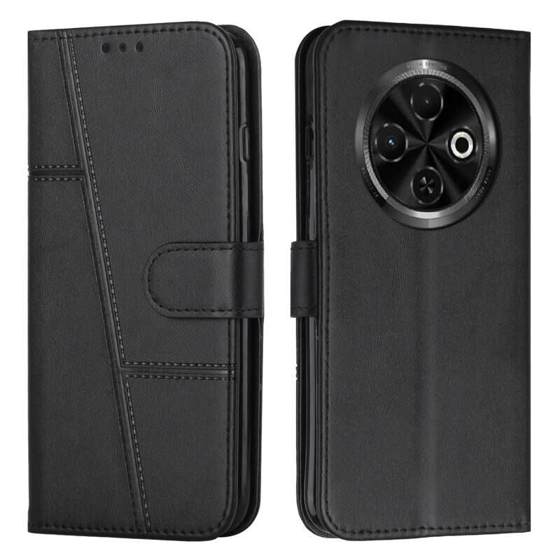 Για Tecno Spark 30C ραφή μοσχάρι υφή πόρπη δερμάτινη θήκη τηλεφώνου (μαύρο)