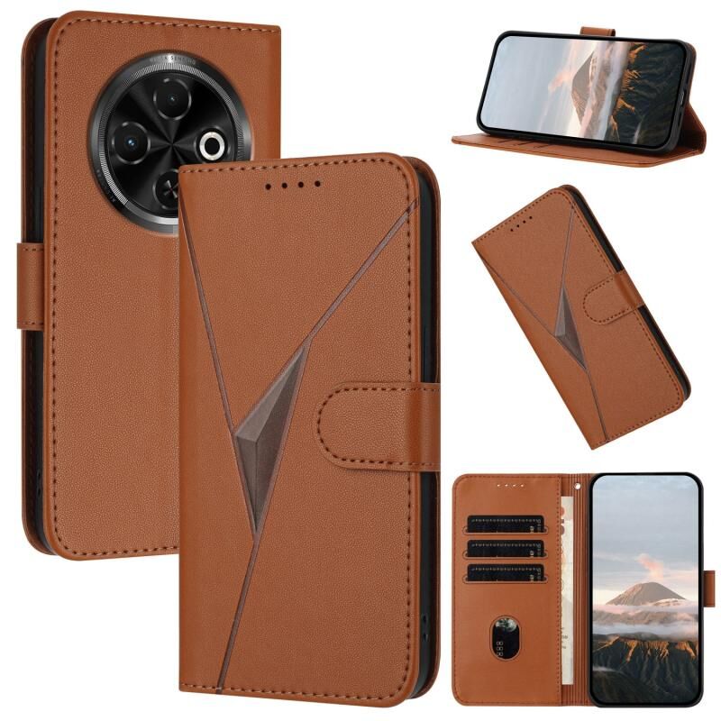 For Tecno Spark 30C Triangle Pattern Buckle Clasp Leather Phone Case(Brown)
