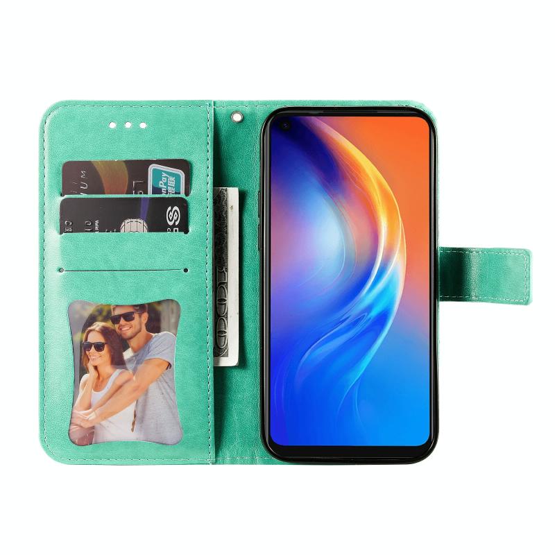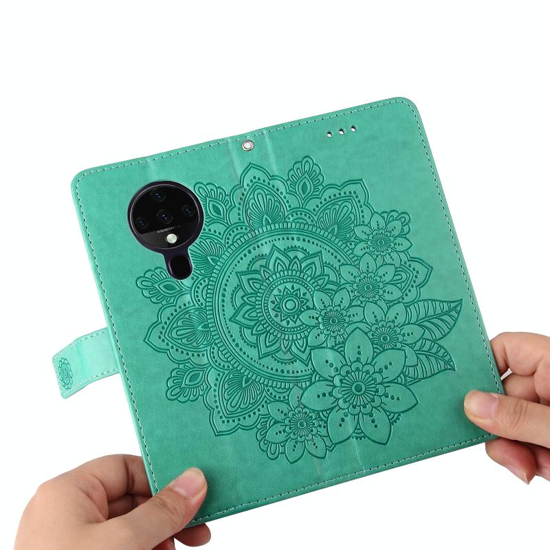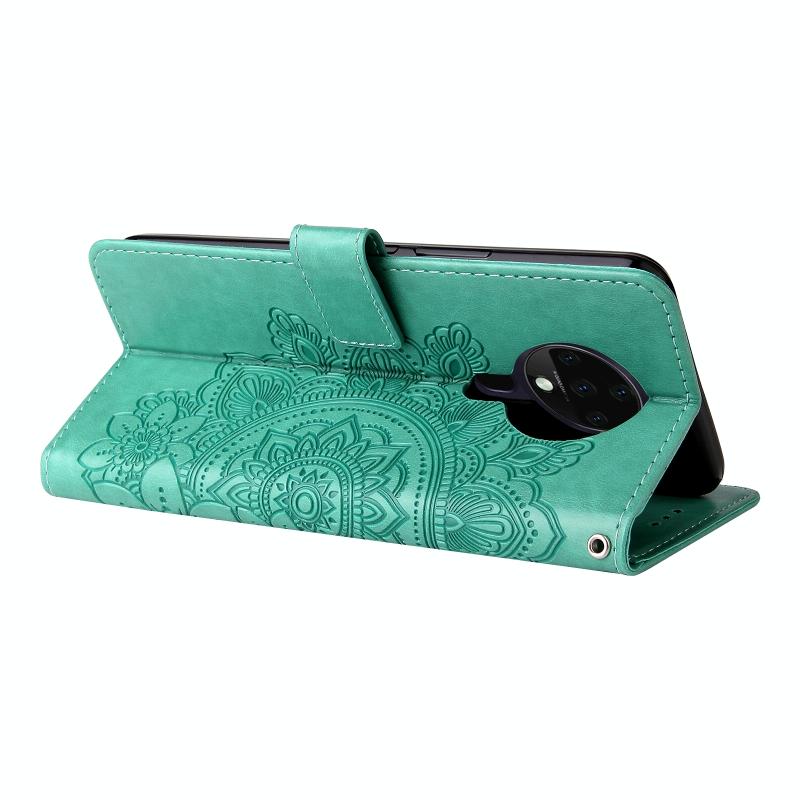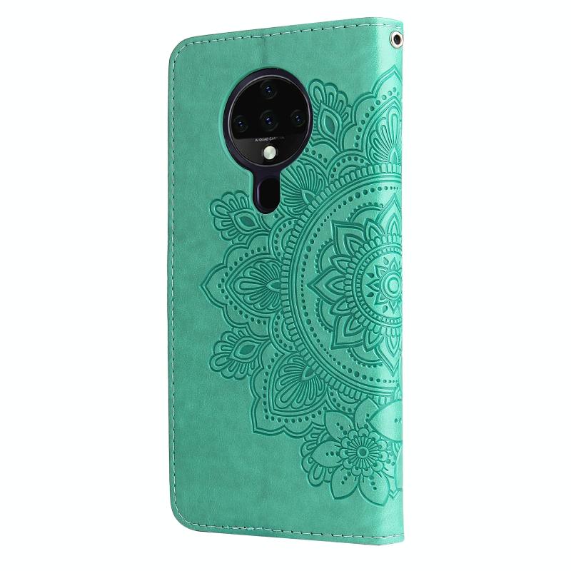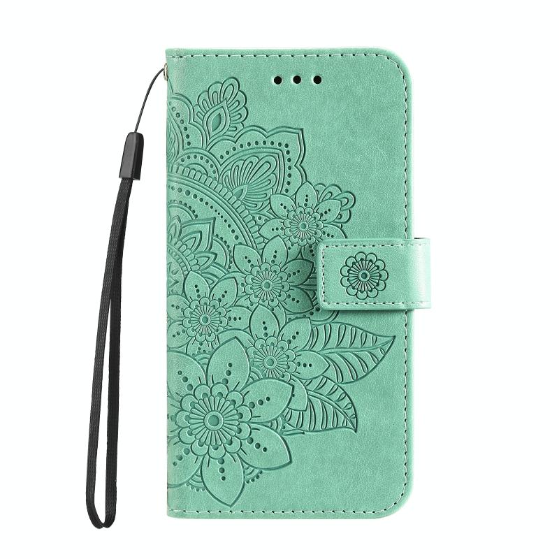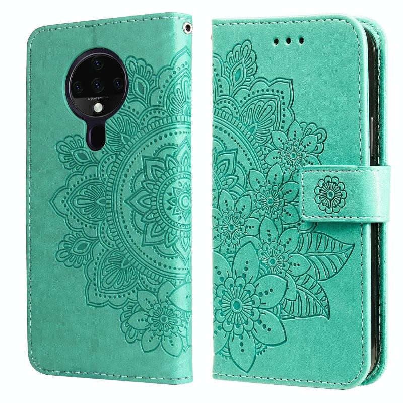 Θήκη Tecno Spark 6 με 7 πέταλα λουλουδιών, ανάγλυφο σχέδιο, οριζόντια, από δερματίνη PU με βάση & υποδοχές καρτών & πορτοφόλι & κορνίζα φωτογραφίας (πράσινο)