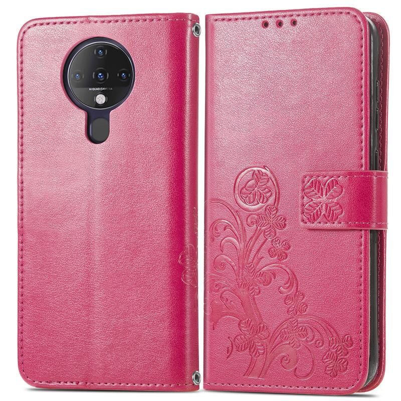 Για Tecno Spark 6 τετράφυλλο κούμπωμα ανάγλυφη αγκράφα κινητό τηλέφωνο προστασία δερμάτινη θήκη με κορδόνι & υποδοχή κάρτας & πορτοφόλι & λειτουργία βραχίονα (Magenta)