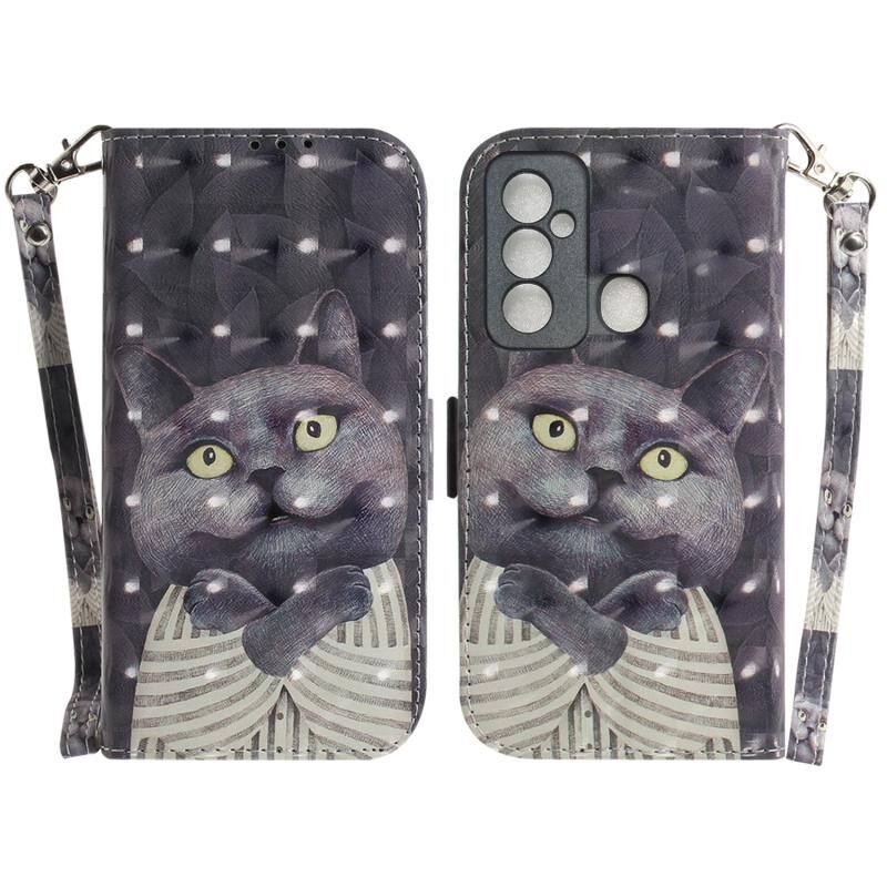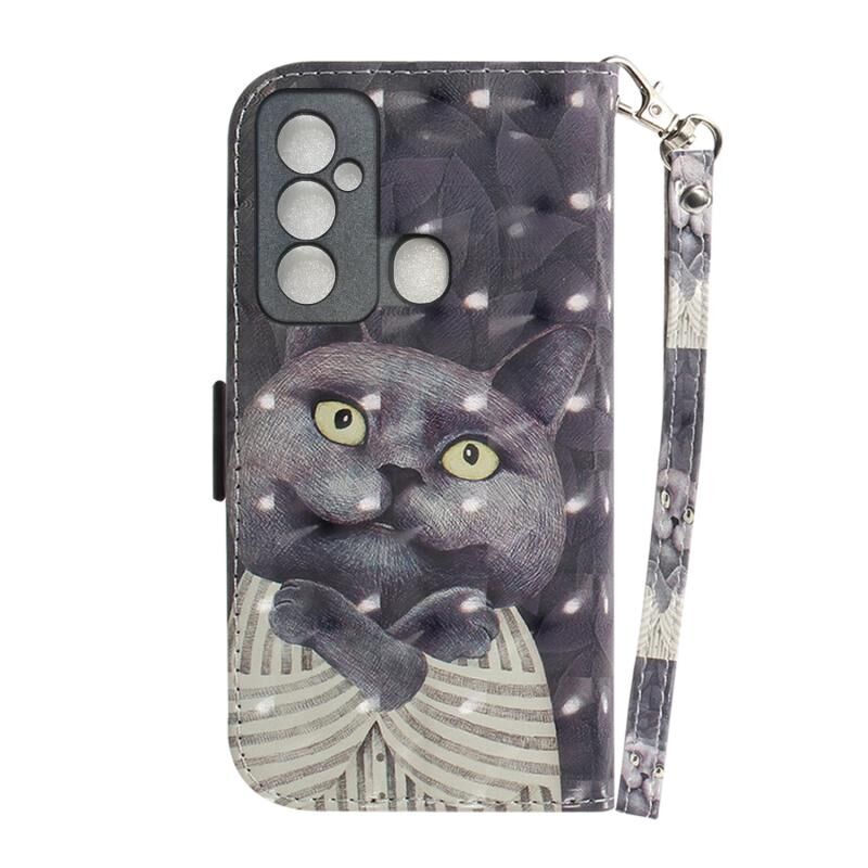 Θήκη τηλεφώνου δερμάτινη, οριζόντια, αναδιπλούμενη, με 3D σχέδιο και χρώματα (Hug Cat) για Tecno Spark 6 GO.
