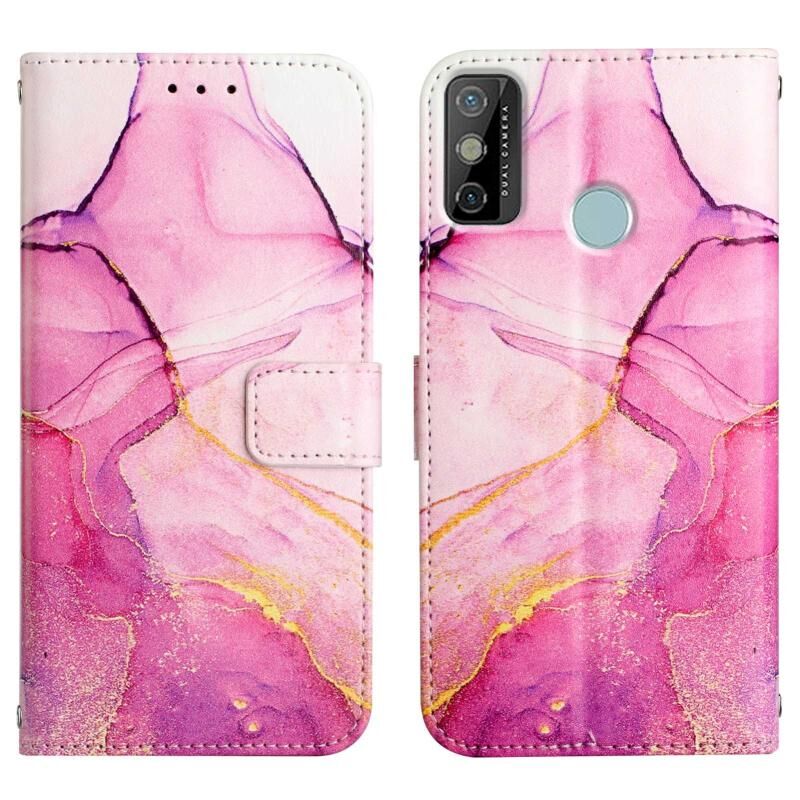 Θήκη τηλεφώνου Tecno Spark 6 Go PT003 από δέρμα με σχέδιο μάρμαρου και πτυσσόμενο μηχανισμό (Ροζ, Μωβ, Χρυσό LS001)