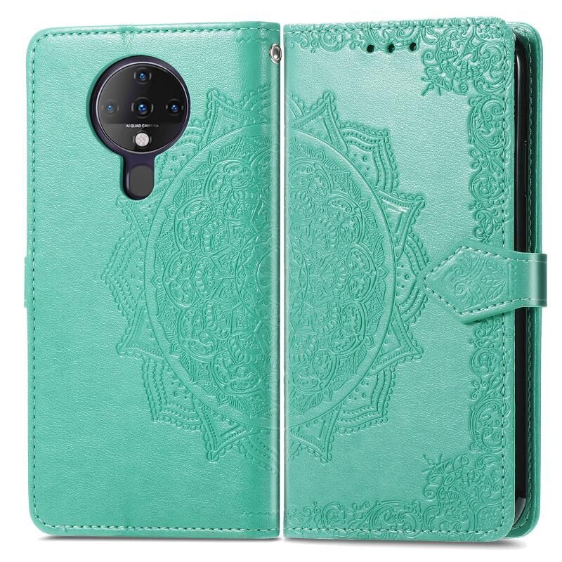Για TECNO SPARK 6 Mandala λουλούδι ανάγλυφο οριζόντια Flip δερμάτινη θήκη με στήριγμα / υποδοχή για κάρτες / πορτοφόλι / κορδόνι (πράσινο)