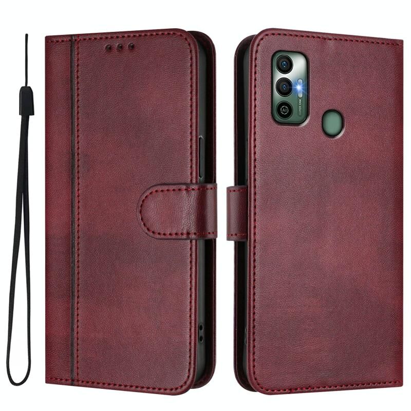 Θήκη τηλεφώνου από δέρμα retro για Tecno Spark 7 / 7T Line με αγκράφα σύνδεσης (Κρασί)