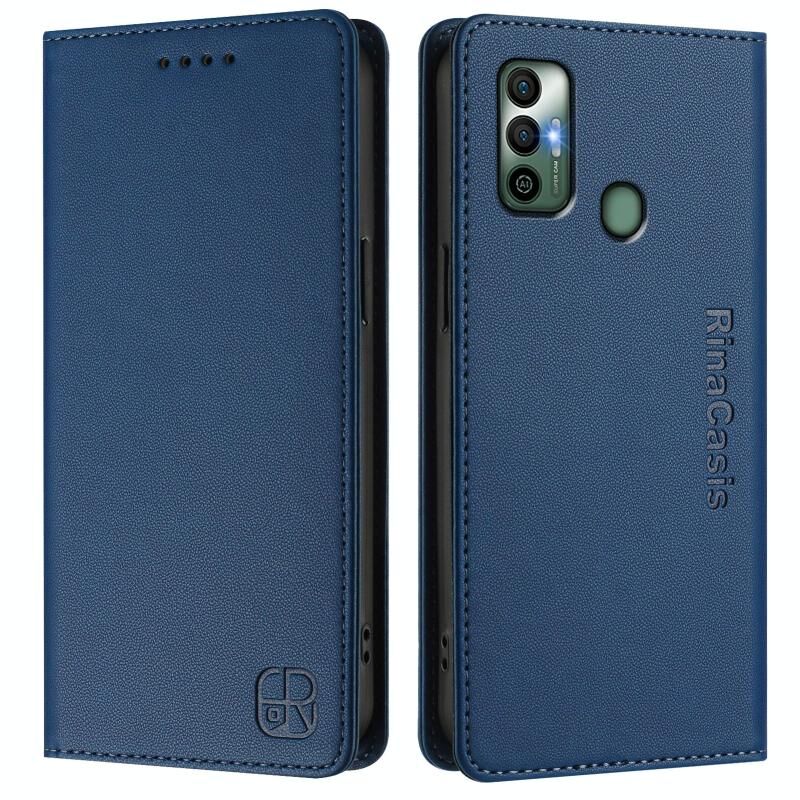 For Tecno Spark 7 / 7T RC01 Dual-Folded Magnetic Suction RFID Leather Phone Case(Dark Blue)