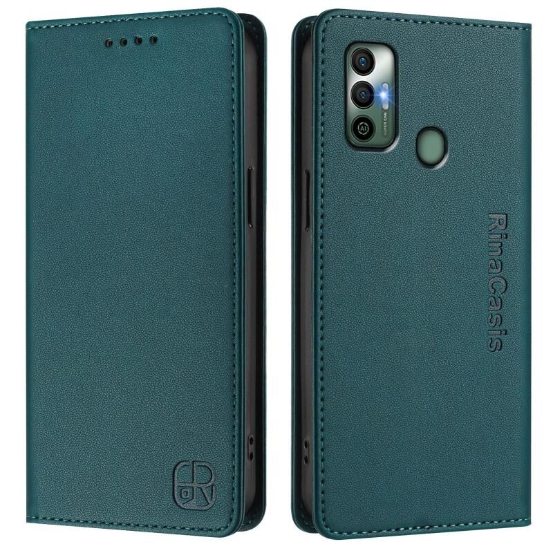 For Tecno Spark 7 / 7T RC01 Dual-Folded Magnetic Suction RFID Leather Phone Case(Dark Green)