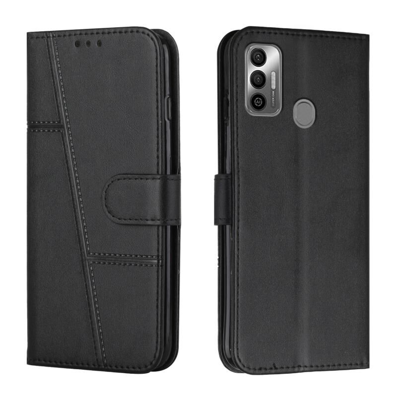 Για Tecno Spark 7 / 7T ραφή μοσχάρι υφή πόρπη δερμάτινη θήκη τηλεφώνου (μαύρο)