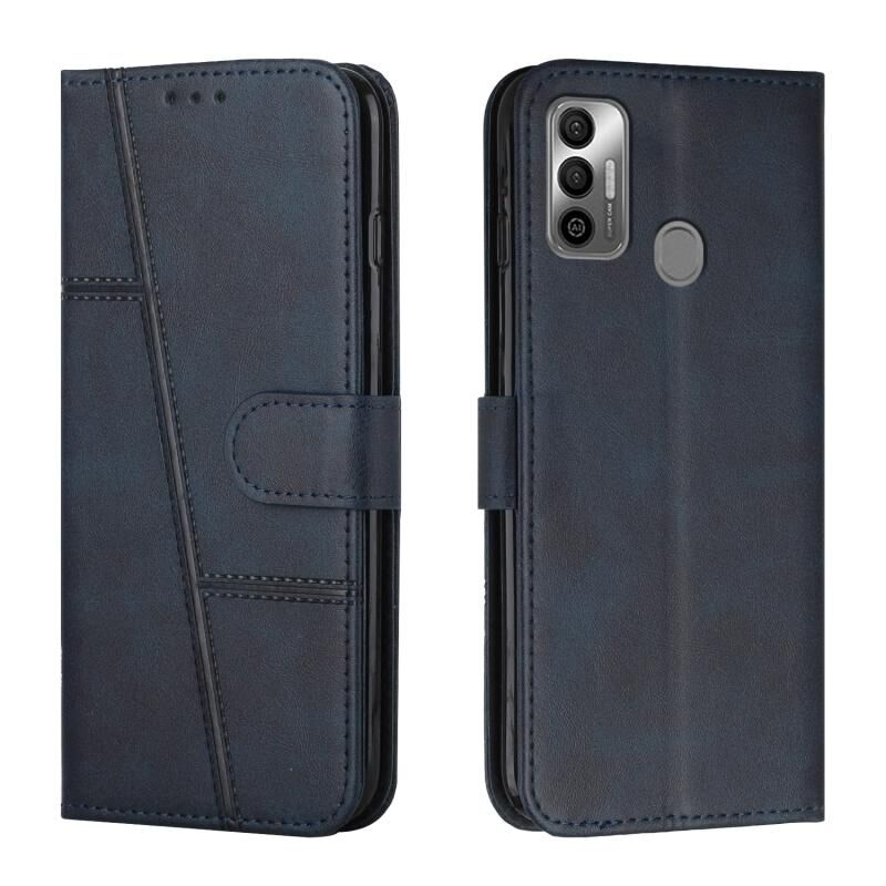 Για Tecno Spark 7 / 7T ραφή μοσχάρι υφή πόρπη δερμάτινη θήκη τηλεφώνου (μπλε)