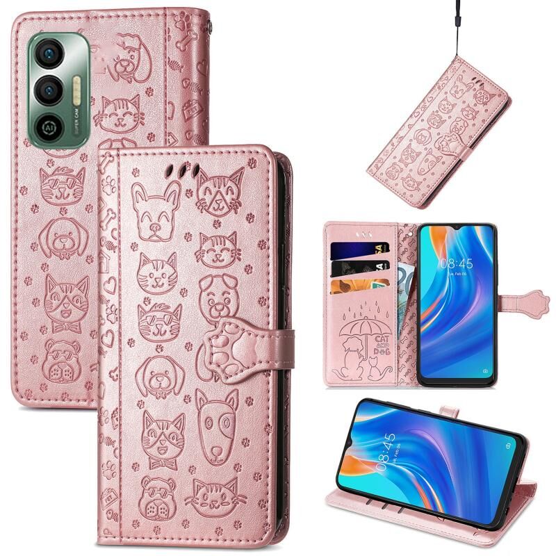 Θήκη τηλεφώνου Tecno Spark 7 με ανάγλυφο σχέδιο γάτας και σκύλου από δέρμα (Μπλε)