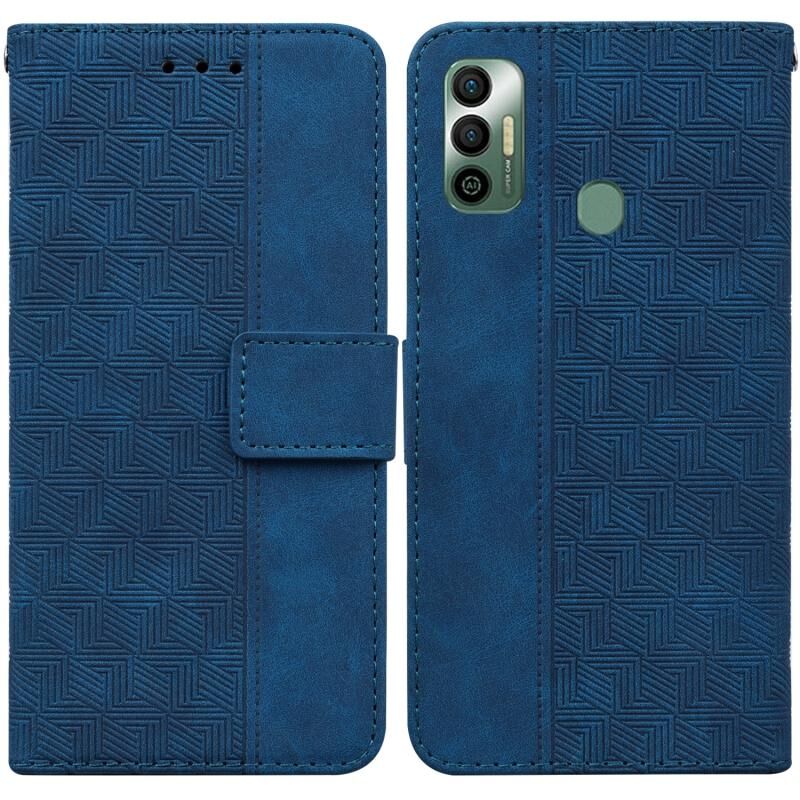 Για Tecno Spark 7 Γεωμετρική ανάγλυφη δερμάτινη θήκη τηλεφώνου (μπλε)