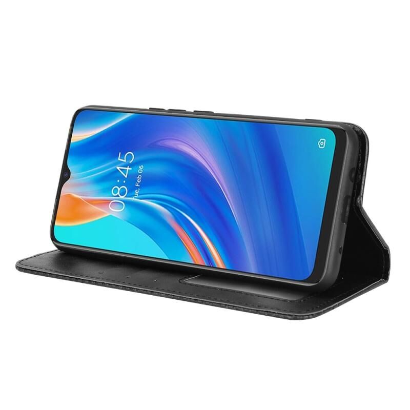 Για Tecno Spark 7 Μαγνητική πόρπη ρετρό υφή δερμάτινη θήκη τηλεφώνου (μαύρο)