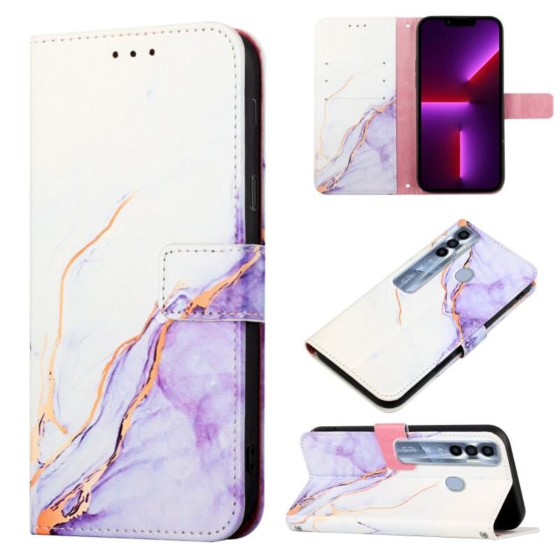 Θήκη τηλεφώνου Tecno Spark 7 Pro PT003 από δέρμα με σχέδιο μάρμαρου και πτυσσόμενο μηχανισμό (Ροζ, Μωβ, Χρυσό LS001)