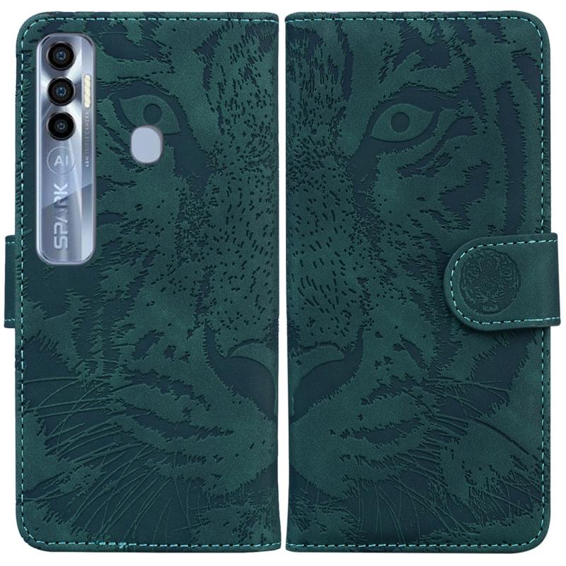 Θήκη τηλεφώνου από δέρμα με οριζόντιο άνοιγμα για Tecno Spark 7 Pro με ανάγλυφο σχέδιο τίγρης (Ροζ)