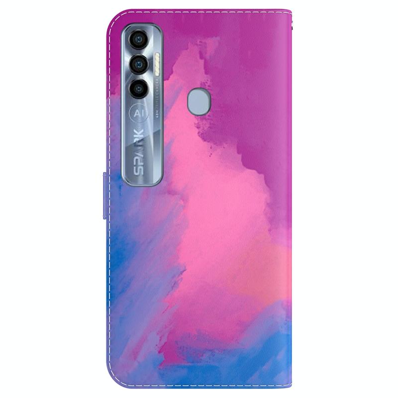 Θήκη τηλεφώνου δερμάτινη, οριζόντια, με σχέδιο ακουαρέλας για Tecno Spark 7 Pro (Μωβ-κόκκινο)