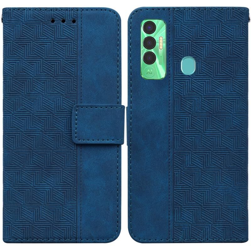 Για Tecno Spark 7P Γεωμετρική ανάγλυφη δερμάτινη θήκη τηλεφώνου (μπλε)