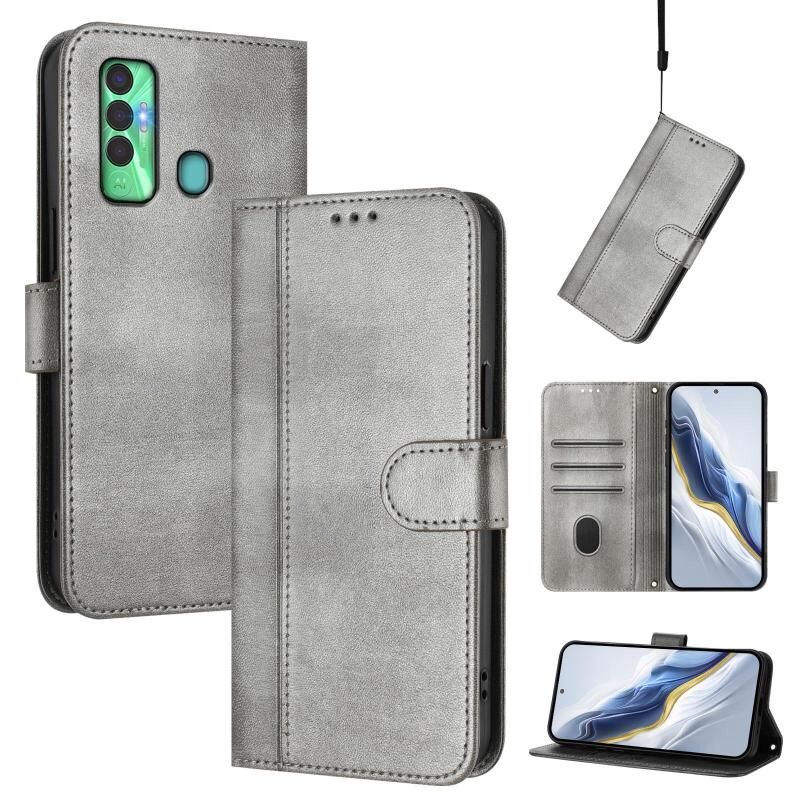 Θήκη τηλεφώνου Tecno Spark 7P Line Splicing Buckle Retro Leather (Γκρι)