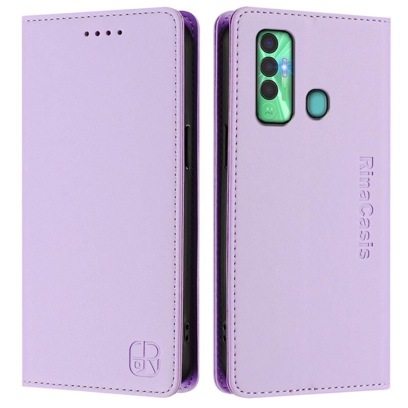 For Tecno Spark 7P RC01 Dual-Folded Magnetic Suction RFID Leather Phone Case(Light Purple)