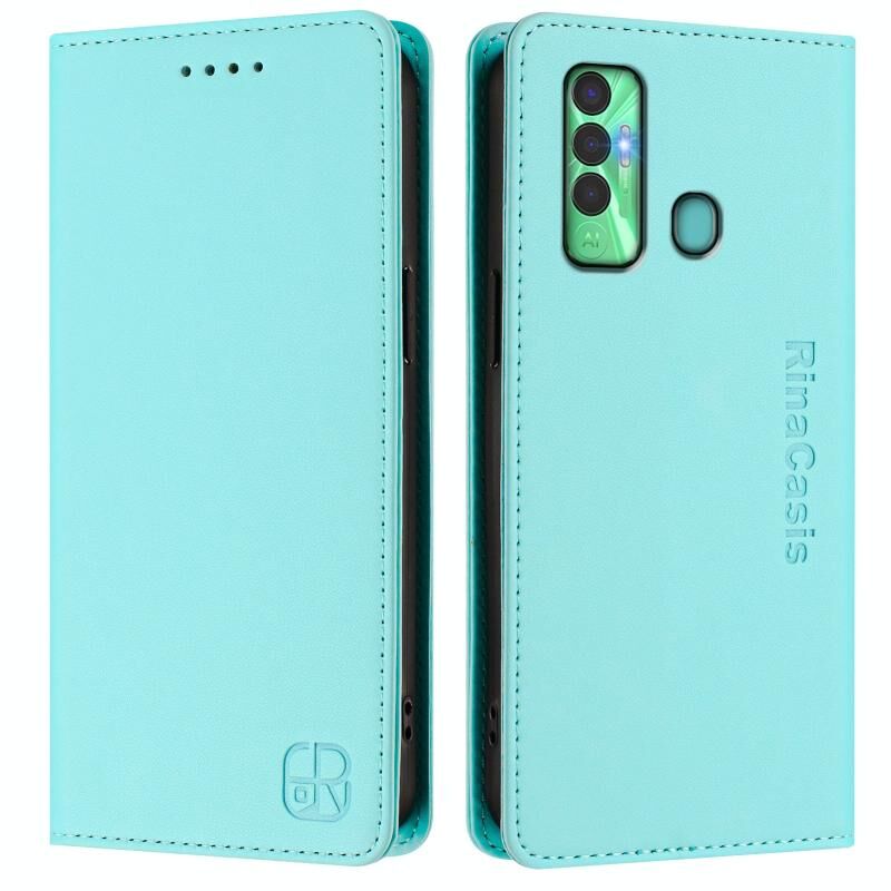 For Tecno Spark 7P RC01 Dual-Folded Magnetic Suction RFID Leather Phone Case(Mint Green)