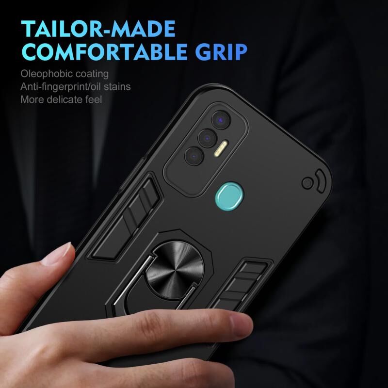 For Tecno Spark 7P Shockproof Metal Ring Holder Phone Case(Black)