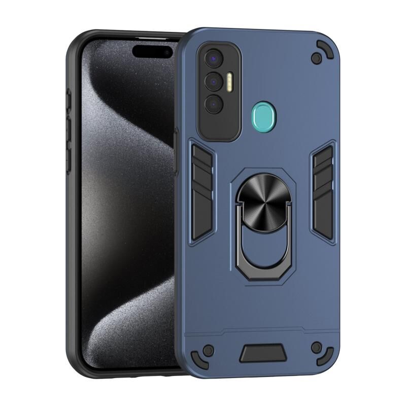For Tecno Spark 7P Shockproof Metal Ring Holder Phone Case(Blue)