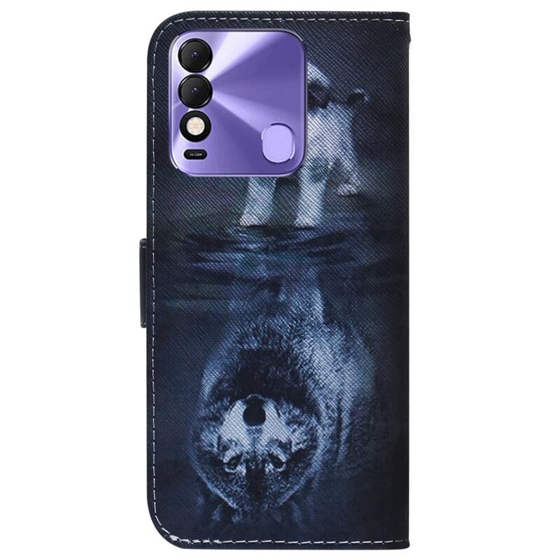 Θήκη τηλεφώνου από δέρμα με έγχρωμο σχέδιο για Tecno Spark 8 / 8T (Λύκος και Σκύλος)