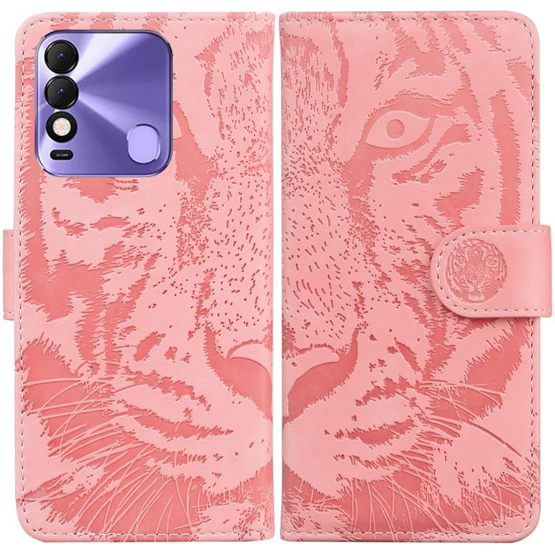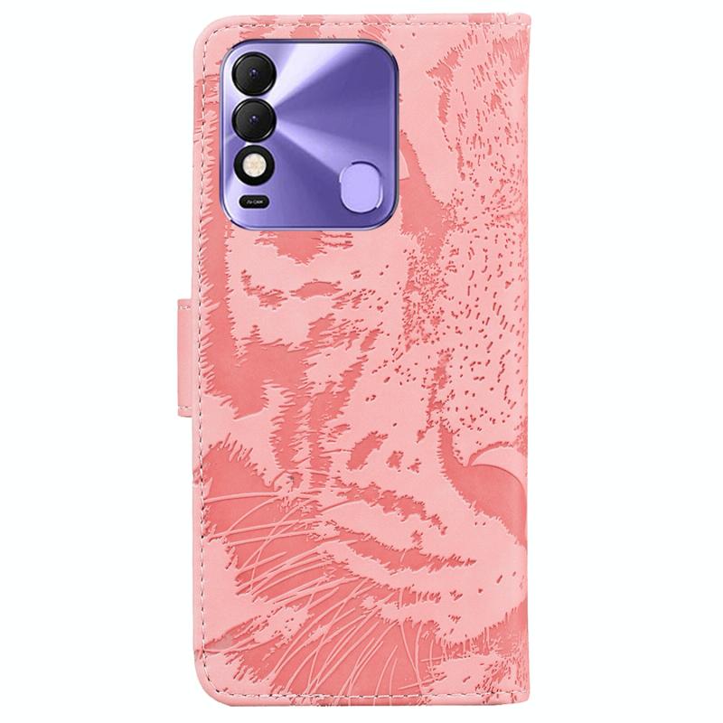 Θήκη τηλεφώνου από δέρμα με οριζόντιο άνοιγμα και ανάγλυφο σχέδιο τίγρης για Tecno Spark 8 / 8T (Ροζ)