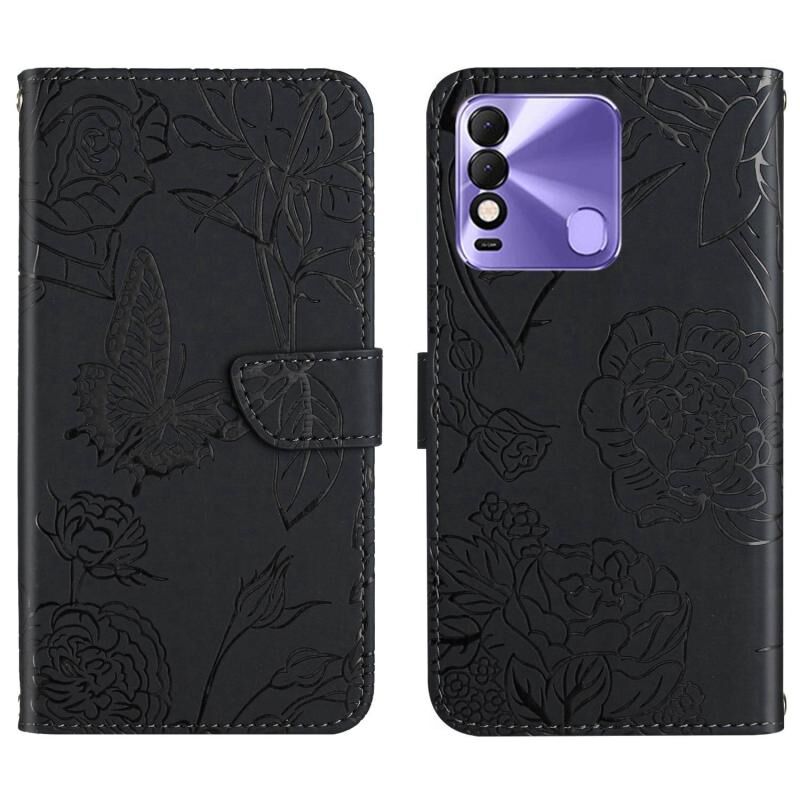 Για Tecno Spark 8 HT03 δέρμα αίσθηση πεταλούδα ανάγλυφο Flip υπόθεση τηλεφώνου δέρμα (μαύρο)