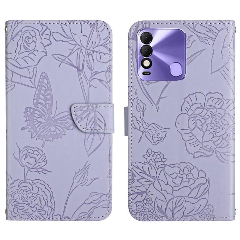 Για Tecno Spark 8 HT03 Skin Feel πεταλούδα ανάγλυφο Flip υπόθεση τηλεφώνου δέρμα (μωβ)
