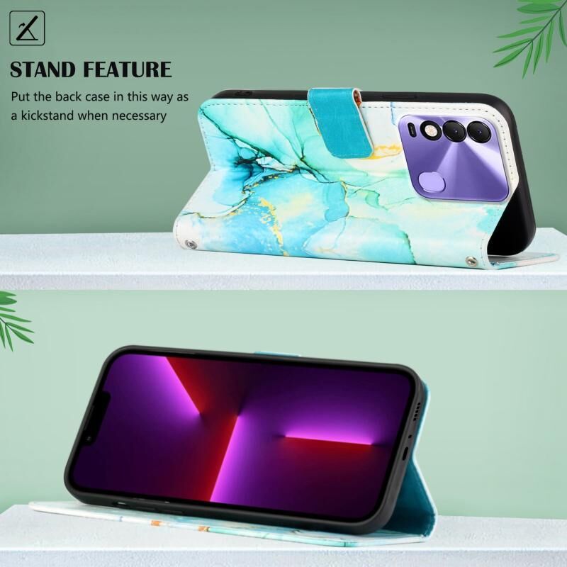 Θήκη τηλεφώνου Tecno Spark 8 PT003 από δέρμα με σχέδιο μάρμαρου και πτυσσόμενο καπάκι (Ροζ Μωβ Χρυσό LS001)