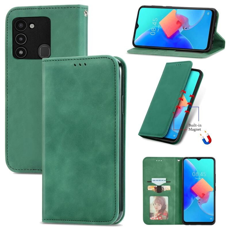 Για Tecno Spark 8C Ρετρό δέρμα αίσθηση μαγνητικό δέρμα τηλέφωνο υπόθεση (πράσινο)
