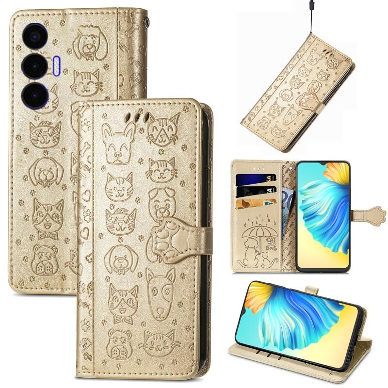 Θήκη τηλεφώνου Tecno Spark 8P με ανάγλυφο σχέδιο γάτας και σκύλου από δέρμα (Μπλε)