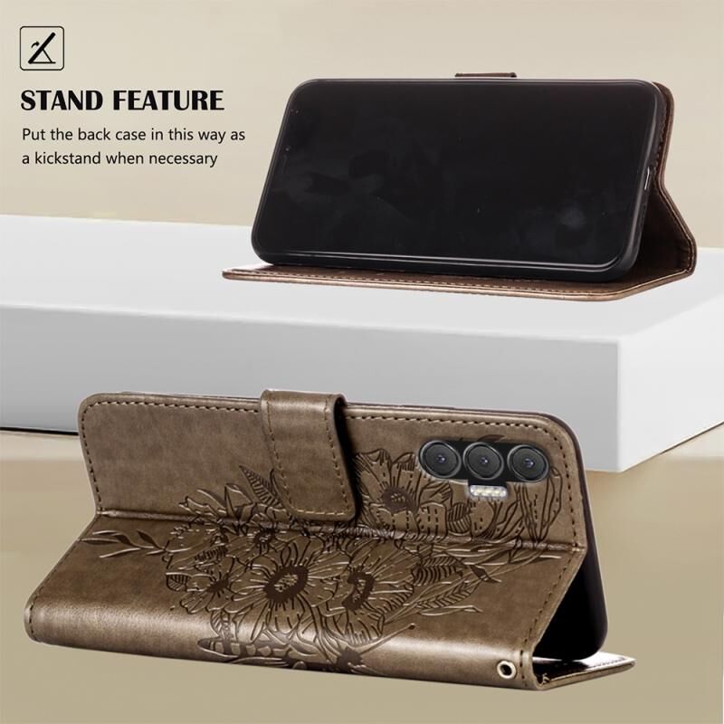 Θήκη τηλεφώνου Tecno Spark 8P από δέρμα με ανάγλυφο σχέδιο πεταλούδας (Γκρι)