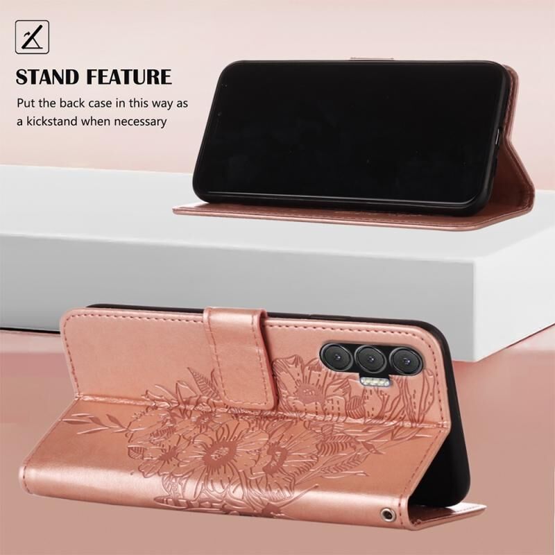 Θήκη τηλεφώνου Tecno Spark 8P από δέρμα με ανάγλυφο σχέδιο πεταλούδας (Γκρι)