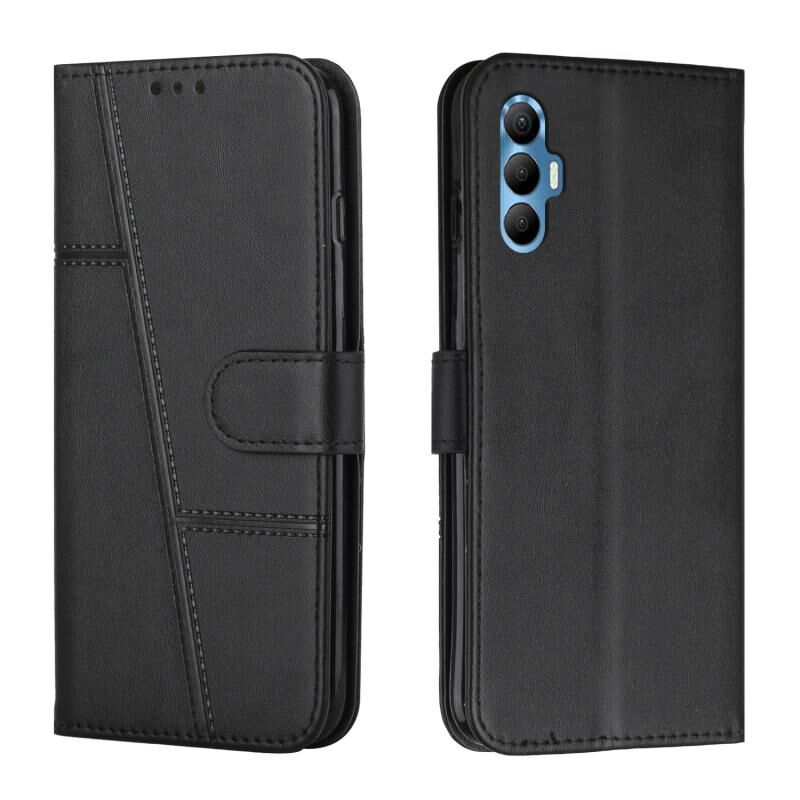 Για Tecno Spark 8P ραφή μοσχάρι υφή πόρπη δερμάτινη θήκη τηλεφώνου (μαύρο)